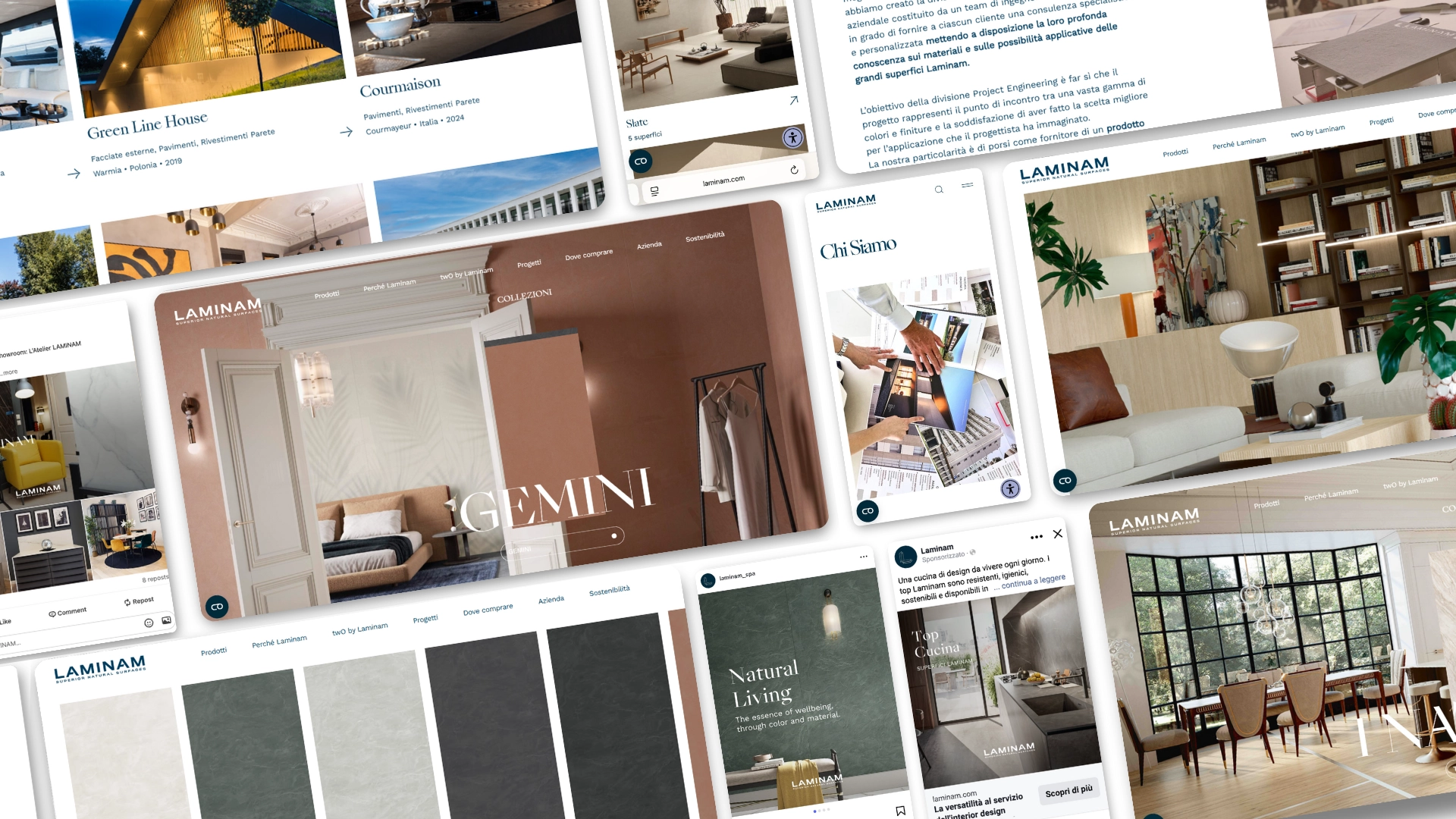 Laminam è un’azienda specializzata nella produzione di superfici ceramiche di grande formato, punto di riferimento per architetti, progettisti e designer a livello globale. L’obiettivo iniziale era chiaro: trasformare una presenza online orientata principalmente al costo per volume in una strategia basata sulla qualità e sulla generazione di contatti altamente qualificati. Da qui è nata la collaborazione con TWOW, con focus primario sui mercati di Italia, Spagna e Francia e test localizzati in Svizzera.