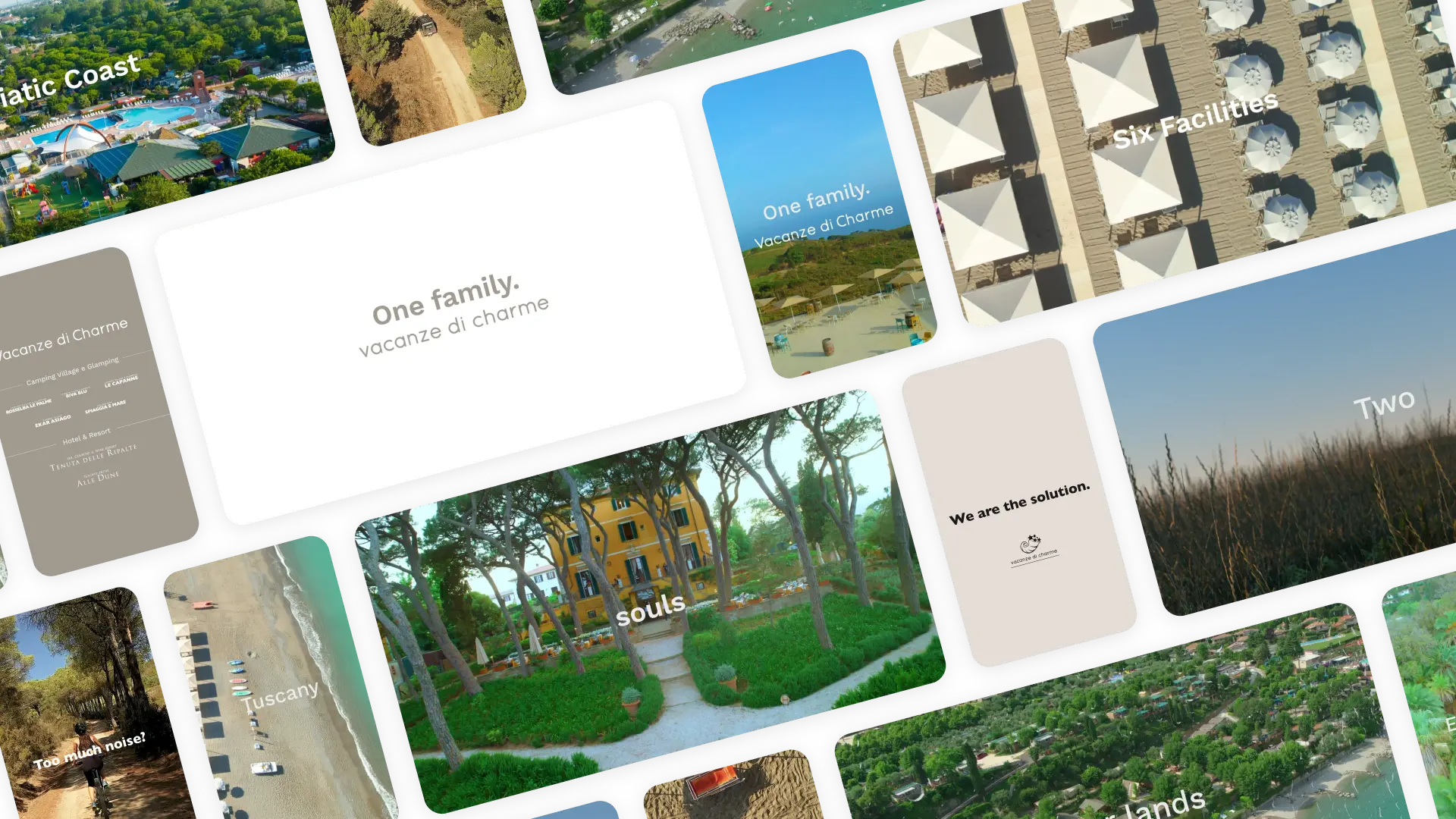 Vacanze di Charme è un gruppo italiano leader nel settore Camping Village & Glamping, che dal 1968 regala vacanze indimenticabili all’aria aperta a famiglie provenienti da tutto il mondo. Con strutture distribuite tra Costa Toscana, Isola d’Elba, Costa Adriatica, Lago di Garda e Altopiano di Asiago, il gruppo si rivolge a target diversi, offrendo esperienze uniche e personalizzate.